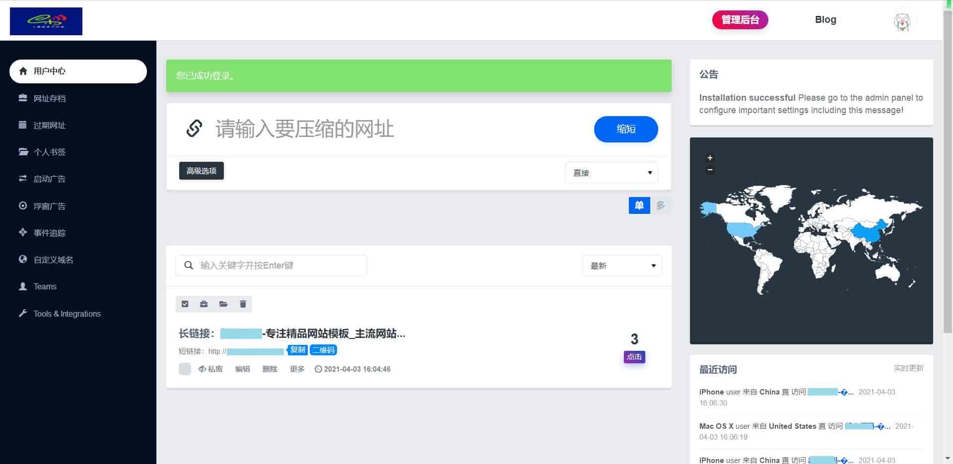 注:本程序只能做到跳转到浏览器,并不能做到真正防红的防封,你的链接被举报多了该封的还是封 已被红的域名生成的短链接也能在QQ内跳转,但是你短链接域名红了或者被拦截就不能跳转,搭建时务必确认域名是否已被拦截! 本源码小编购买有官方正版,,经小编修改部分页面和本地化CSS/JS后发布 (唯一的区别就是你们的没有密钥不能在线更新,其他的功能什么的都能用,安装使用也不需要密钥只是在线更新的时候需要,所以你们安装的不能在线更新,如需更新在本站下载即可) 老用户更新方法: 备份您的文件和数据库,非常重要更新前请务必先备份数据以免出错 将新版本源码上传至根目录解压覆盖 更新完成后,您应该能够使用新功能
