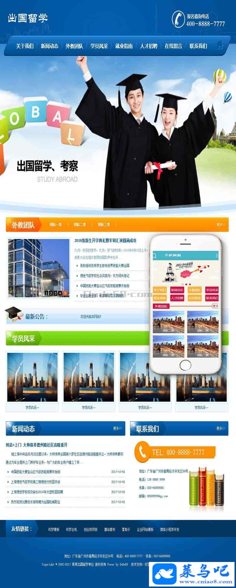 出国留学签证类网站织梦模板(带手机端)+PC+移动端+利于SEO优化