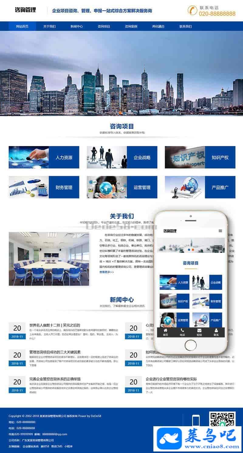响应式咨询管理类网站织梦模板(自适应移动端)+PC+wap+利于SEO优化