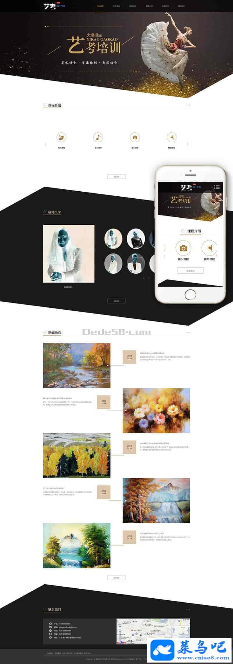 响应式艺考培训类网站织梦模板(自适应手机端)+PC+wap+利于SEO优化