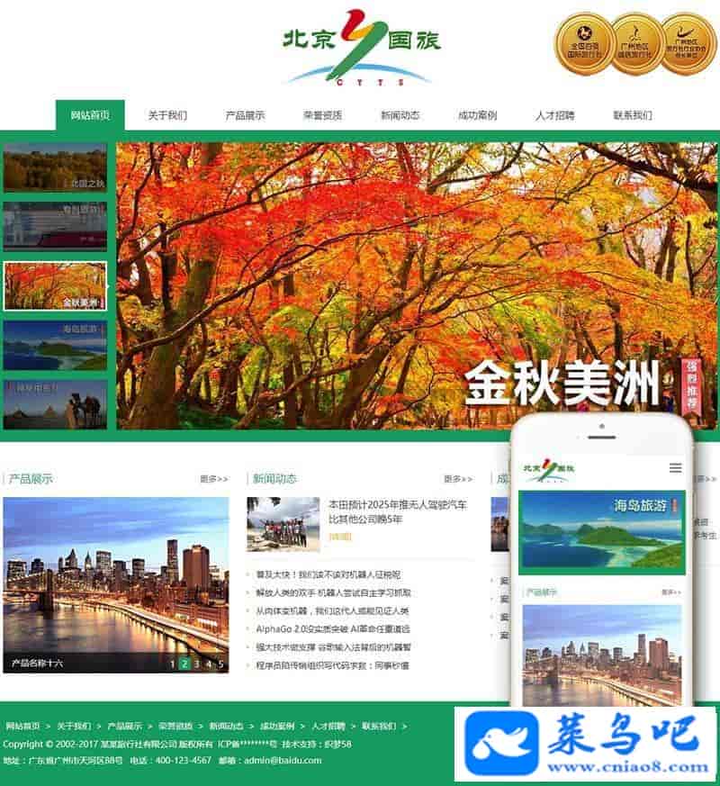 响应式入境国内出境旅游行业类网站织梦模板(自适应手机端)+利于SEO优化