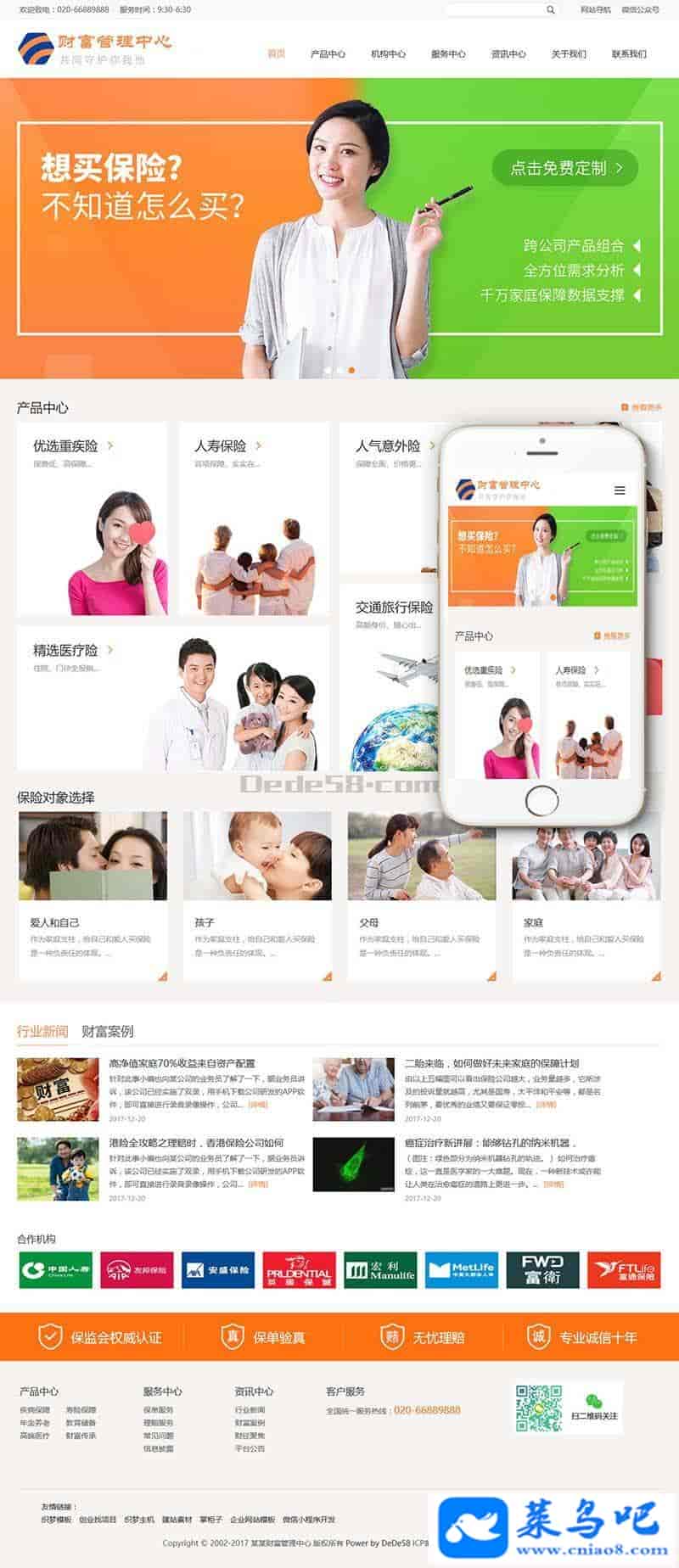 织梦最新内核开发的模板,该模板属于企业通用、HTML5响应式、疾病保障、寿险保障、年金养老、教育储备、高端医疗、财富传承类企业使用,一款适用性很强的模板,基本可以适合各行业的企业网站!