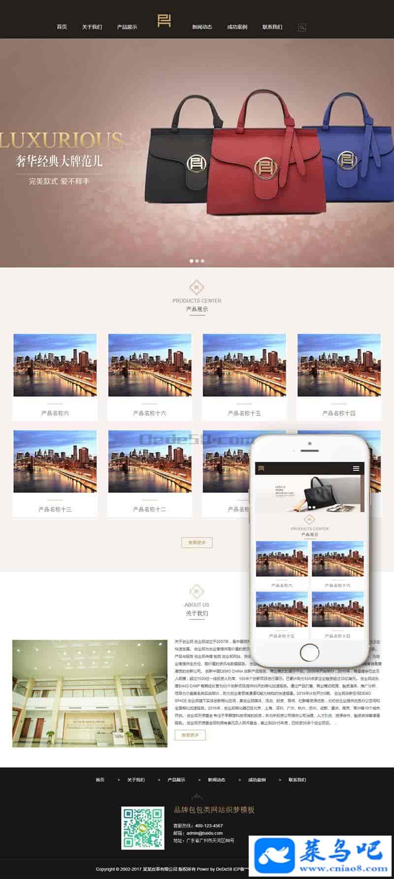 织梦最新内核开发的模板,该模板属于企业通用、HTML5响应式、皮革、包包类企业使用,一款适用性很强的模板,基本可以适合各行业的企业网站!