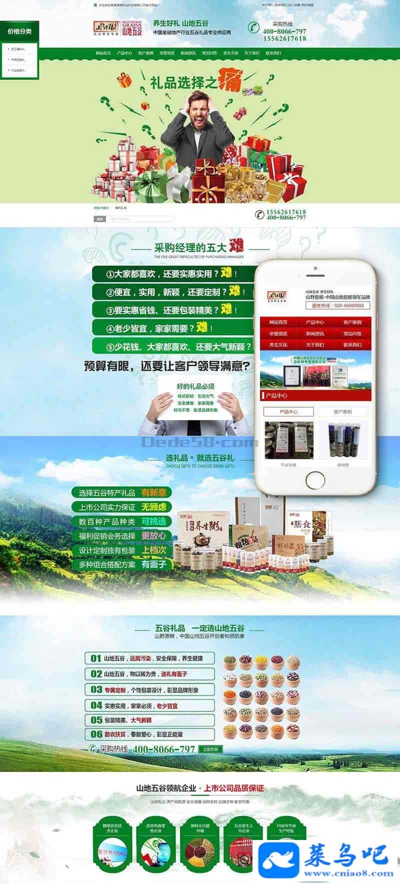 营销型原粮农业类网站织梦模板(带手机端)+PC+移动端+利于SEO优化