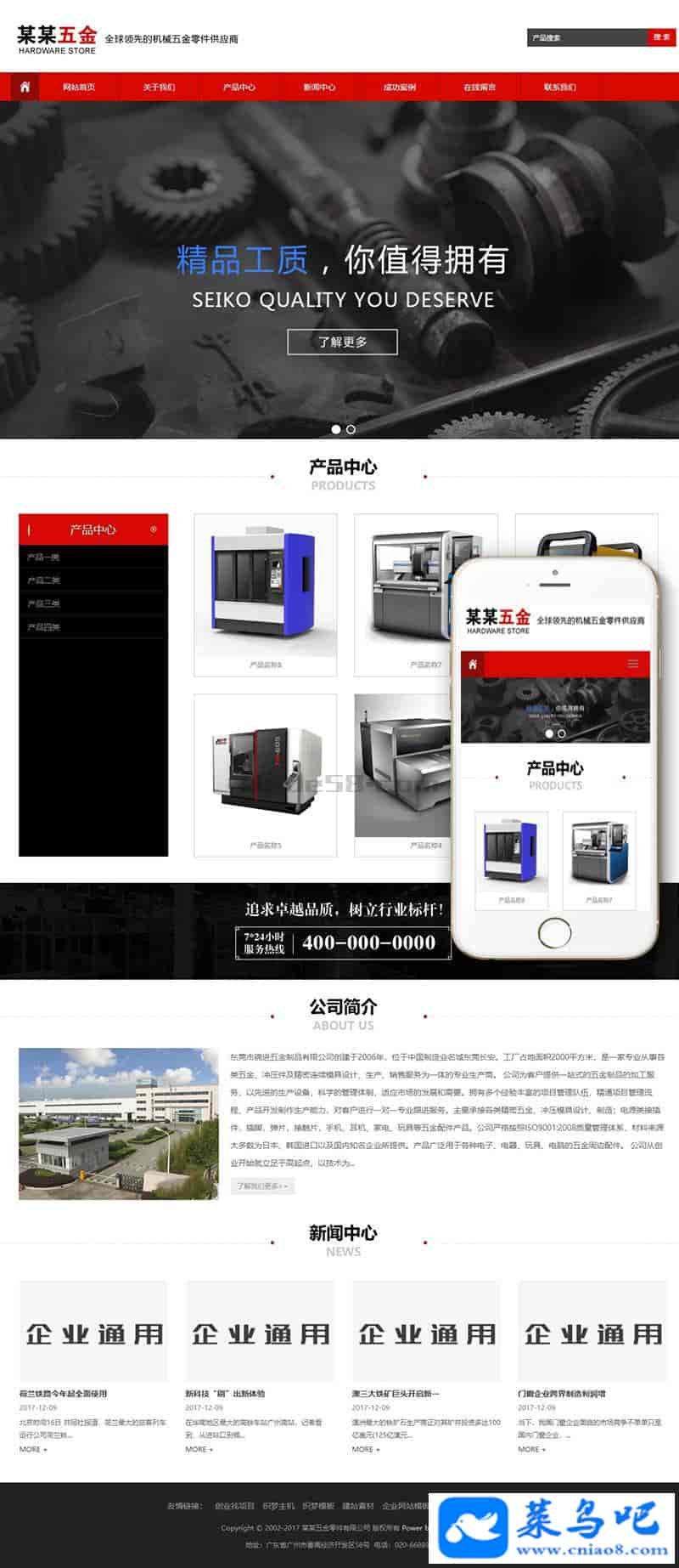 响应式五金零件螺丝类企业织梦模板(自适应手机端)+利于SEO优化