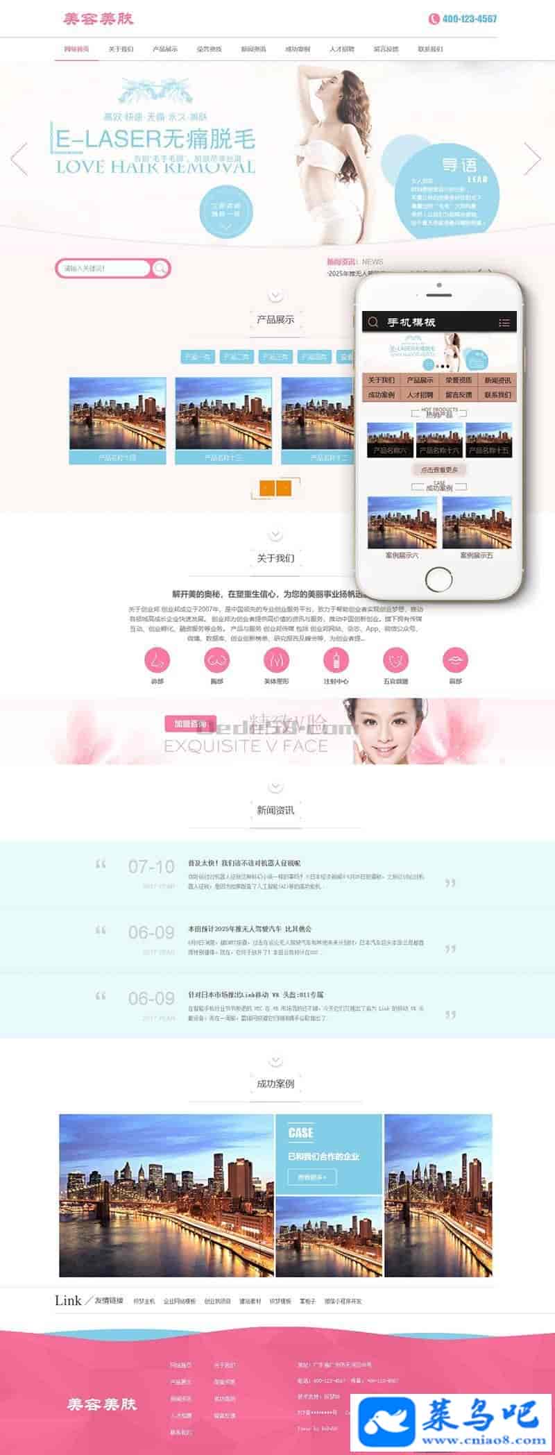 微整形美肤脱毛类网站织梦模板(带手机端)+PC+移动端+利于SEO优化