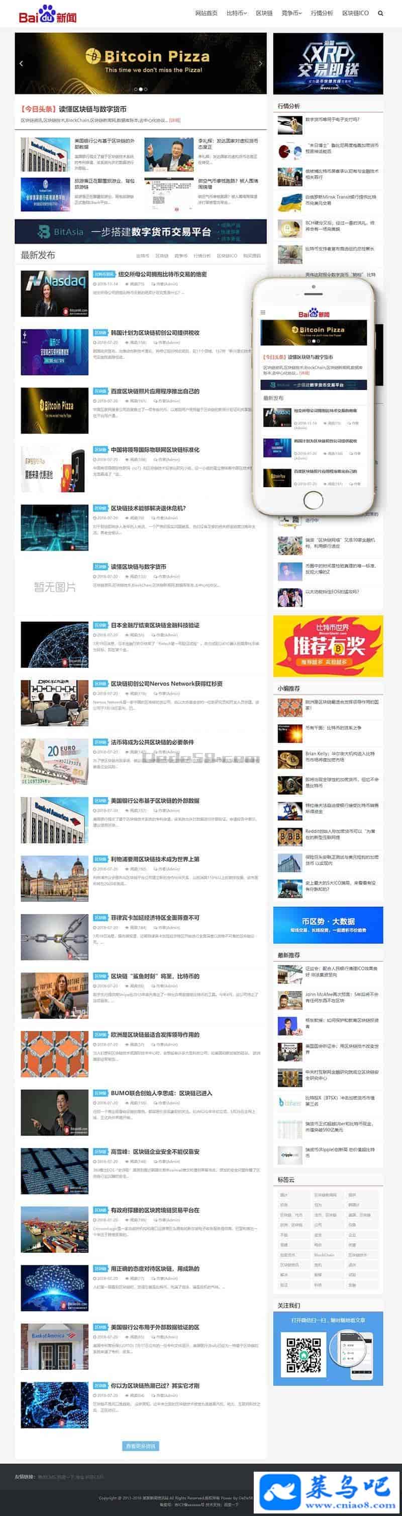 响应式比特币新闻资讯网类网站织梦模板(自适应手机端)+PC+wap+利于SEO优化