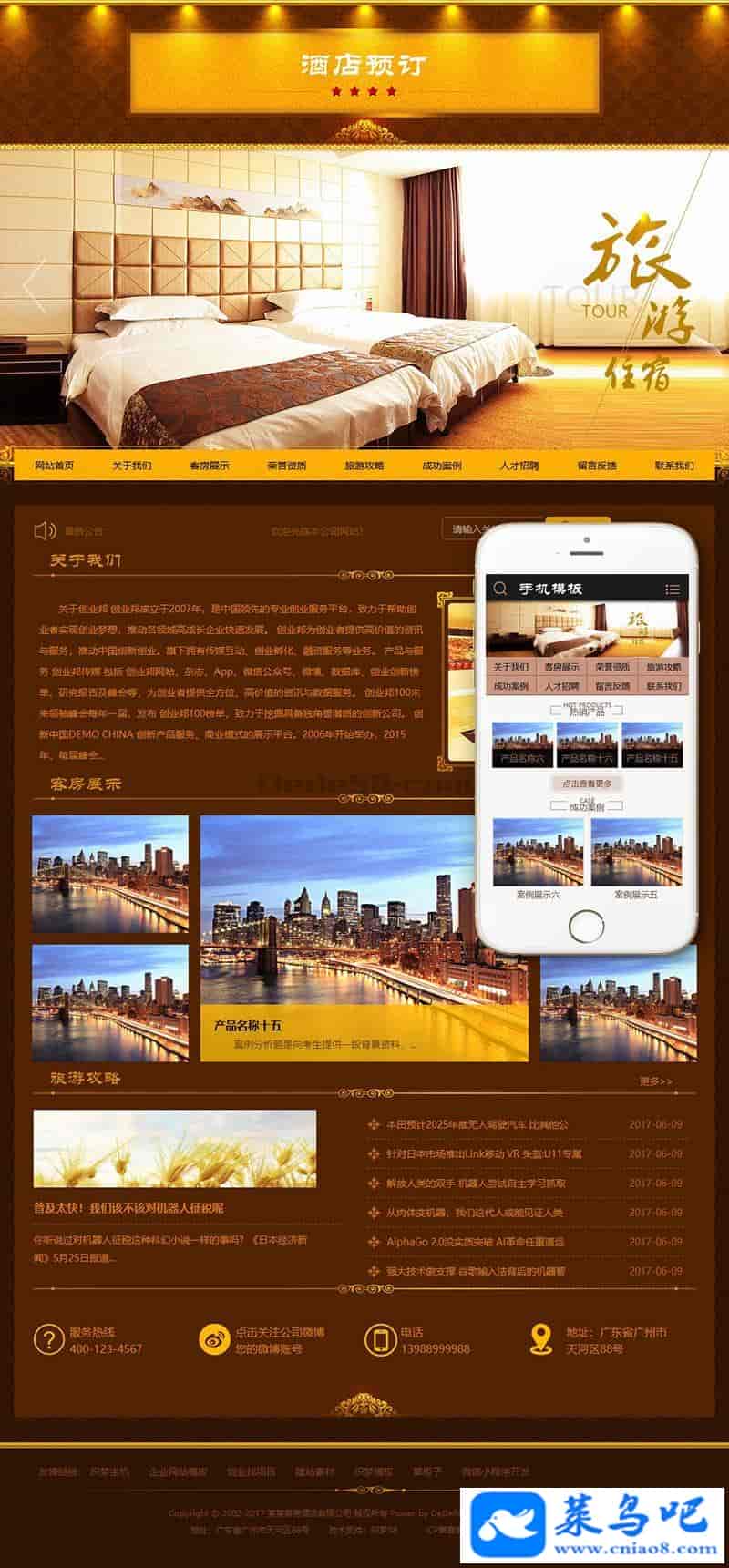 织梦最新内核开发的模板,该模板属于企业通用类、酒店、旅馆、旅租、客房类企业都可使用,