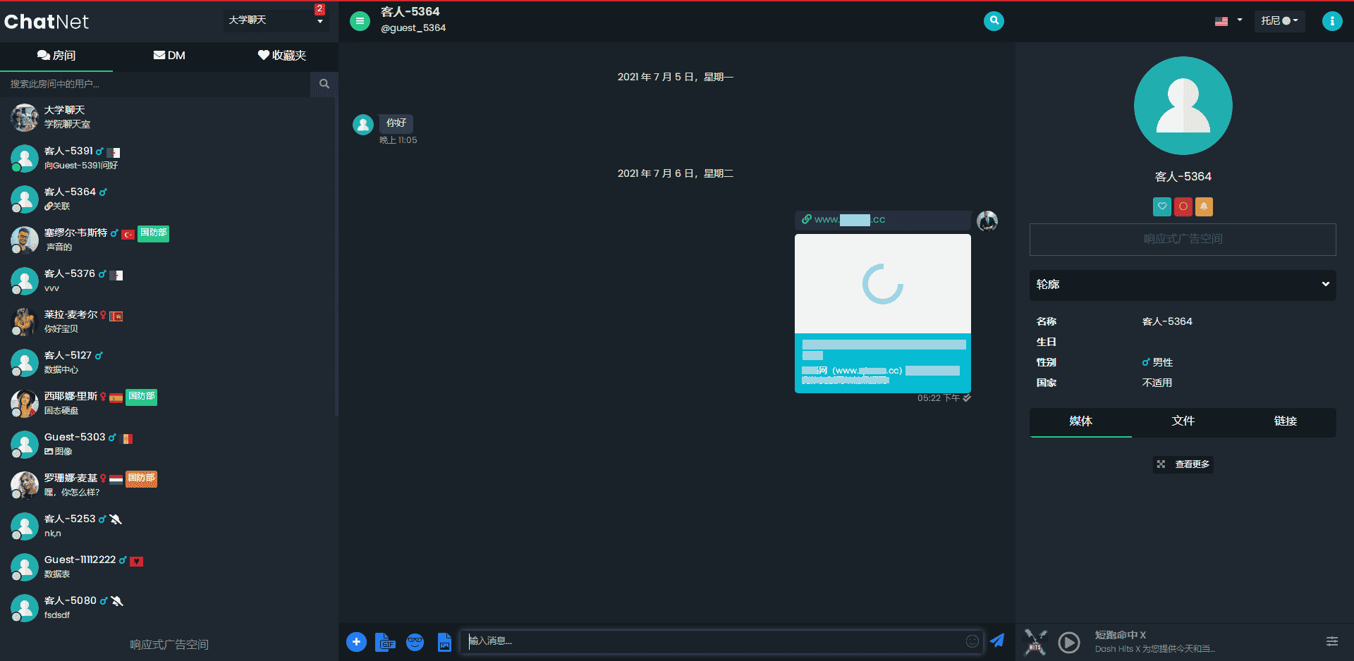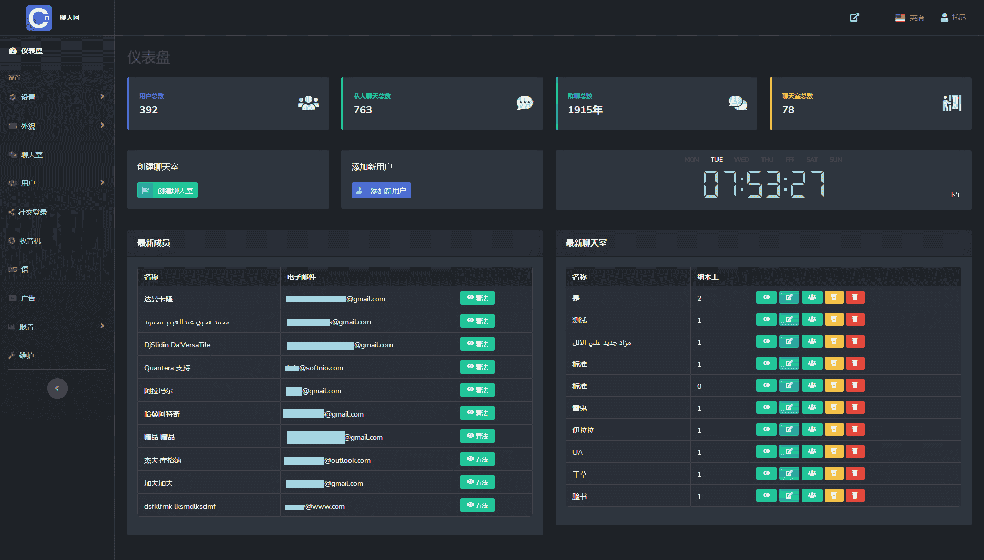 外一款多用户聊天室源码,程序支持同时创建多个聊天室,全站响应式完美适应pc和移动设备,界面的设计现代且用户友好,将使您的网站或应用无缝地成为功能丰富的社区和社交平台。程序内置英语,可轻松翻译为多种语言。