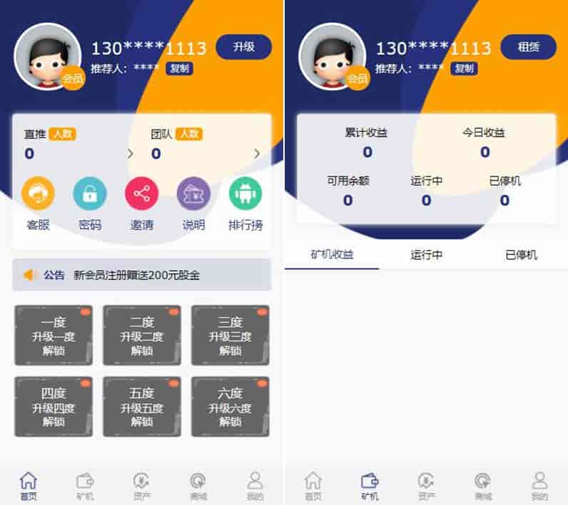 PHP源码二开区块挖矿源码,源码会员分享的,ThinkPHP内核的,二开过,界面看上去不错的,值得借鉴~~