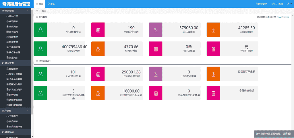 全新UI大气的抢单源码跑分系统源码+代理后台+商户后台