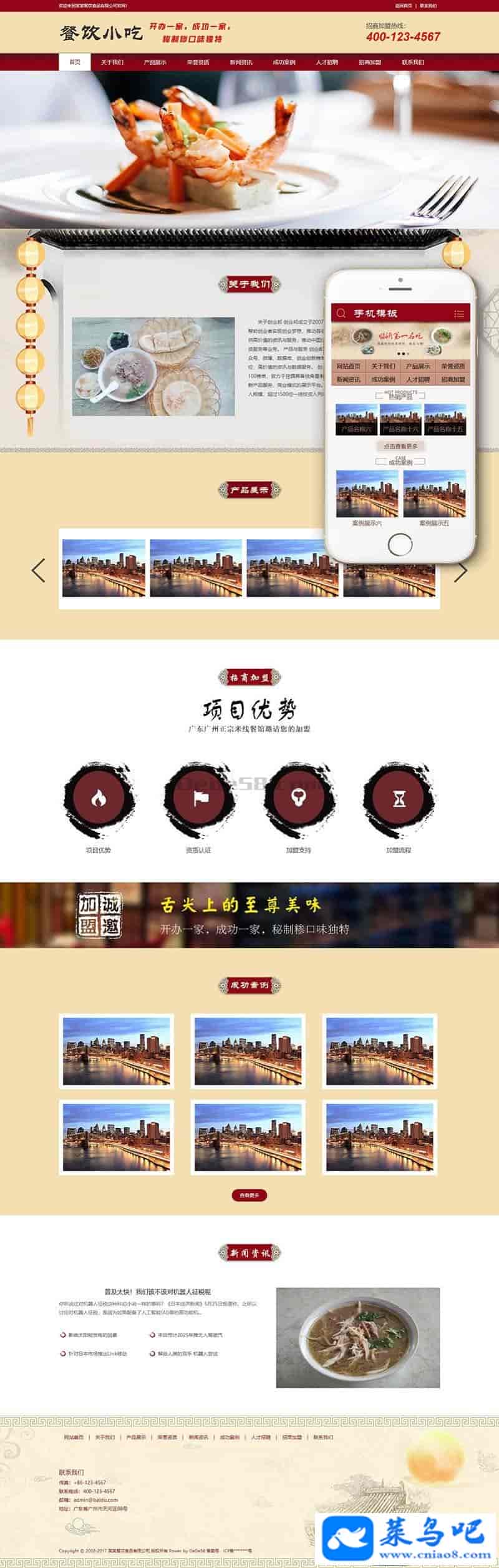 模板名称:餐馆餐饮小吃早餐类织梦模板(带手机端)+PC+移动端+利于SEO优化