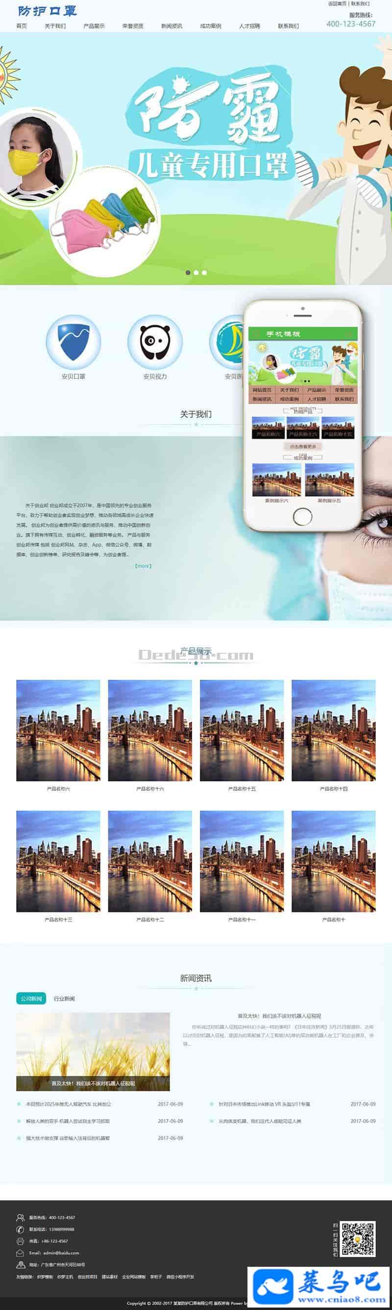 儿童医疗防护口罩类织梦模板(带手机端)+PC+移动端+利于SEO优化