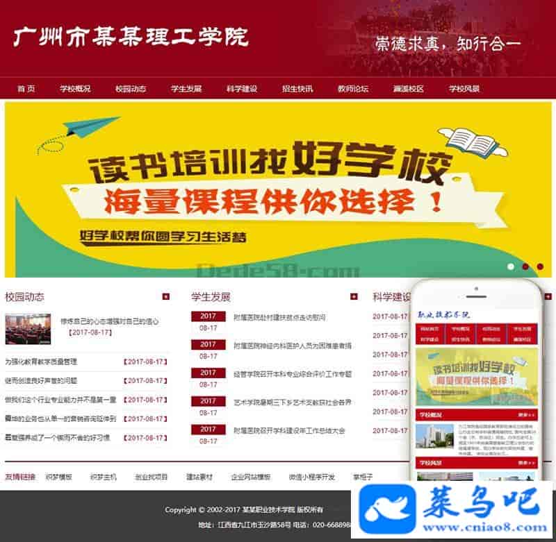 织梦最新内核开发的模板,该模板属于企业通用类、学院、学校、大学类企业都可使用,