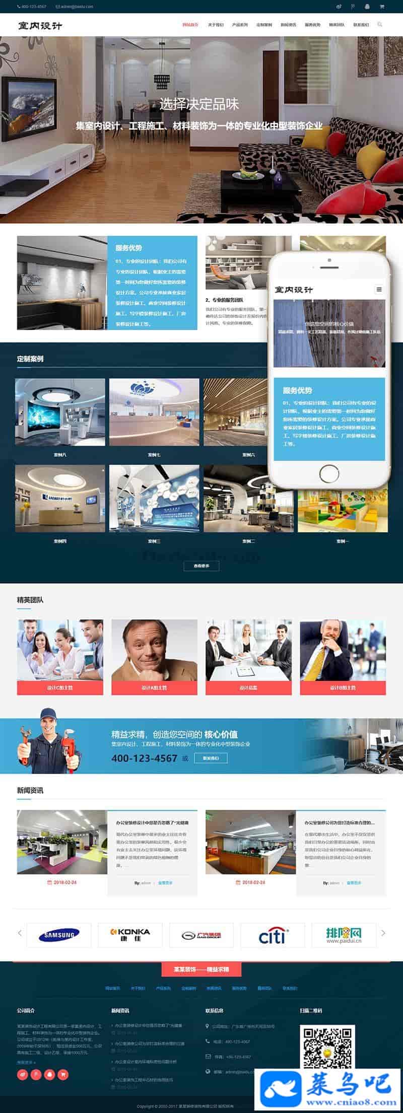 织梦最新内核开发的模板,该模板属于企业通用类、室内设计、工程施工、装饰装修类企业都可使用,