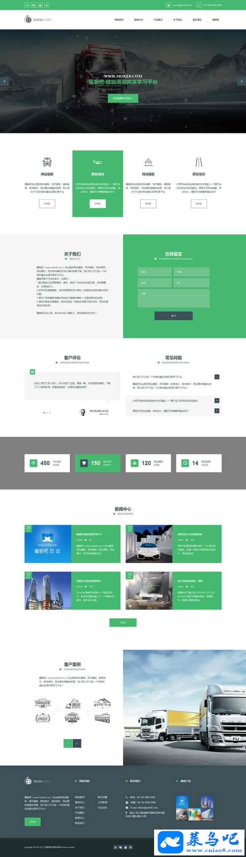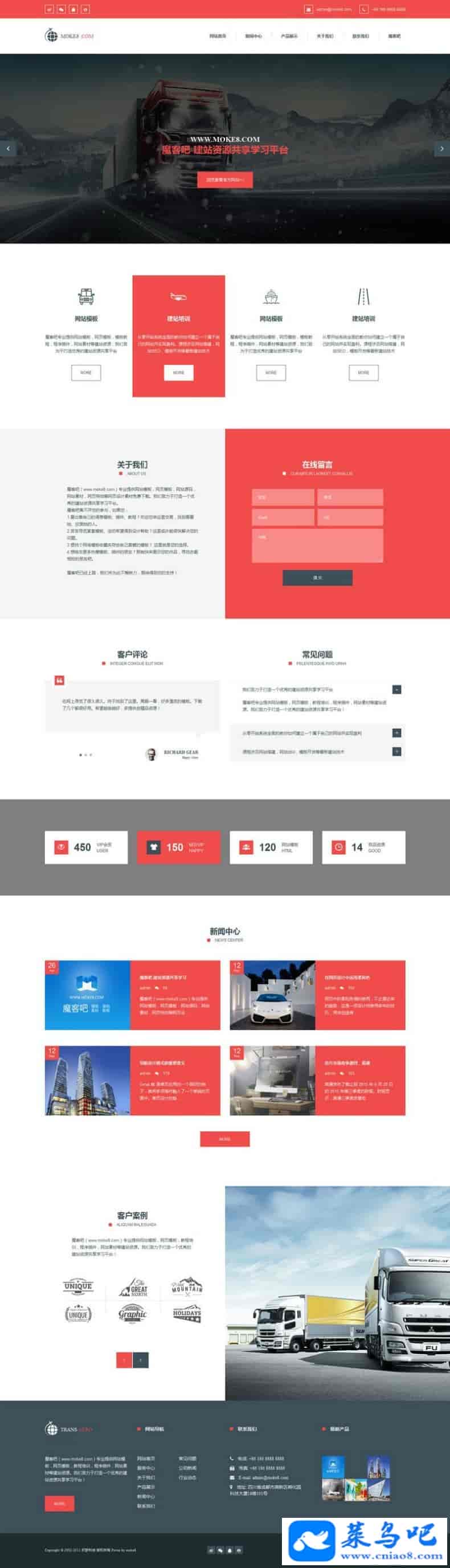 高端红蓝绿简洁响应式dedecms整站网站模板。这是一套设计风格简洁漂亮大气的织梦源码。相比于其它一些国外模板而言,此套模板更简洁大气一些,没有多余的特效,这样的模板更符合国情。这是一套物流卡车类别的模板,模板中使用的配图均与卡车有关。不过整体风格是很通用的,你可以用此套模板用于任何一个企业公司工作室网站。