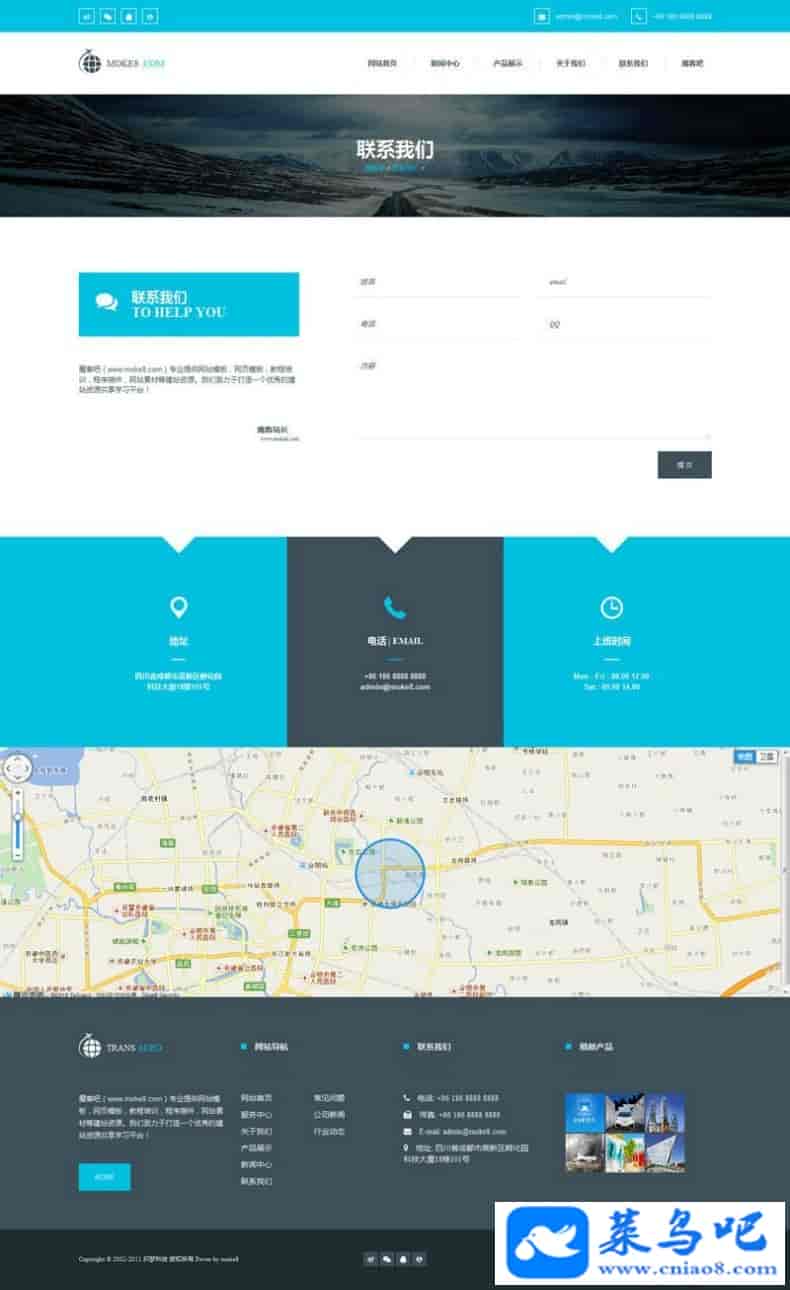 联系我们,关于我们请打开templets/moke8_aero下的contact.htm和about.htm文件修改