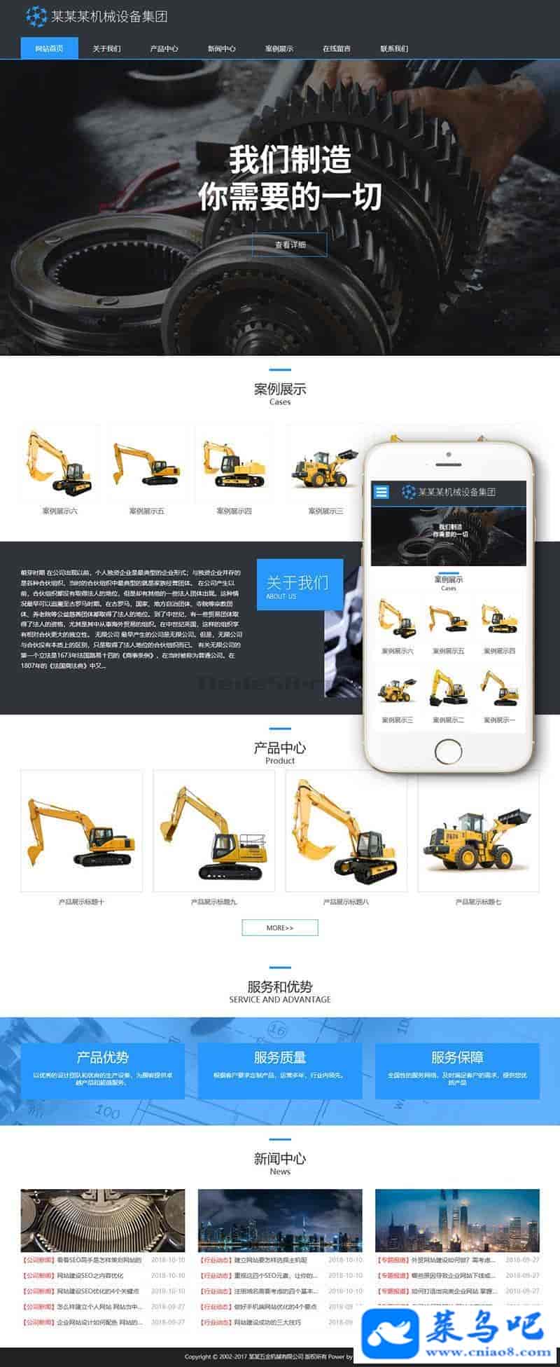 织梦最新内核开发的模板,该模板属于企业通用类、五金、机械类企业都可使用,