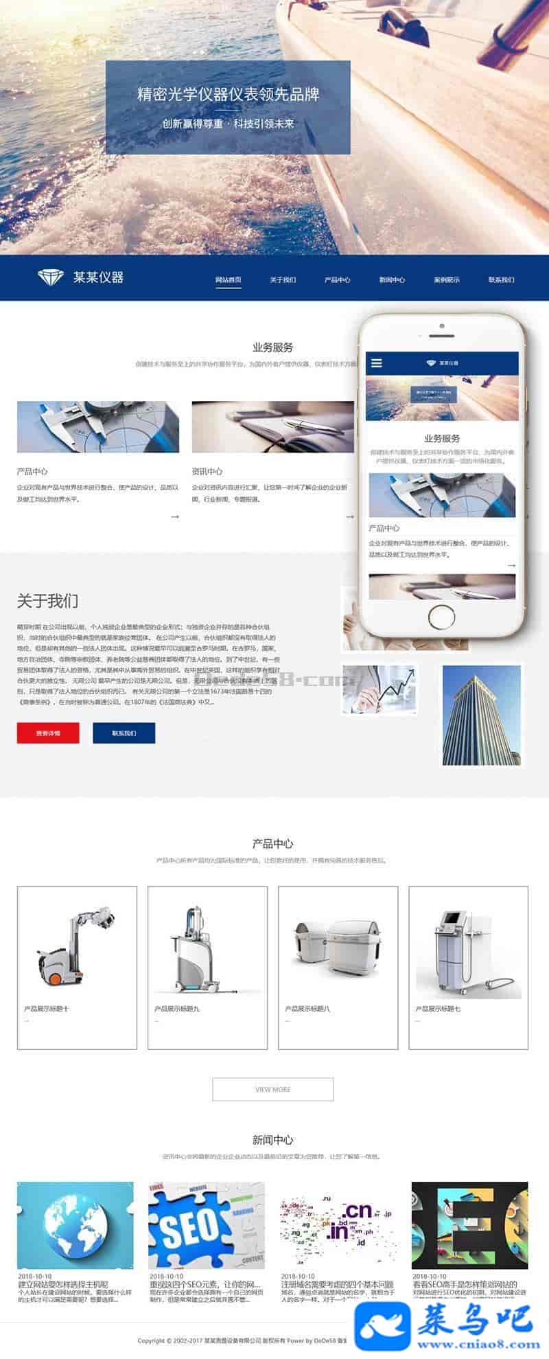 响应式测量试验机类织梦模板(自适应手机端)+PC+wap+利于SEO优化