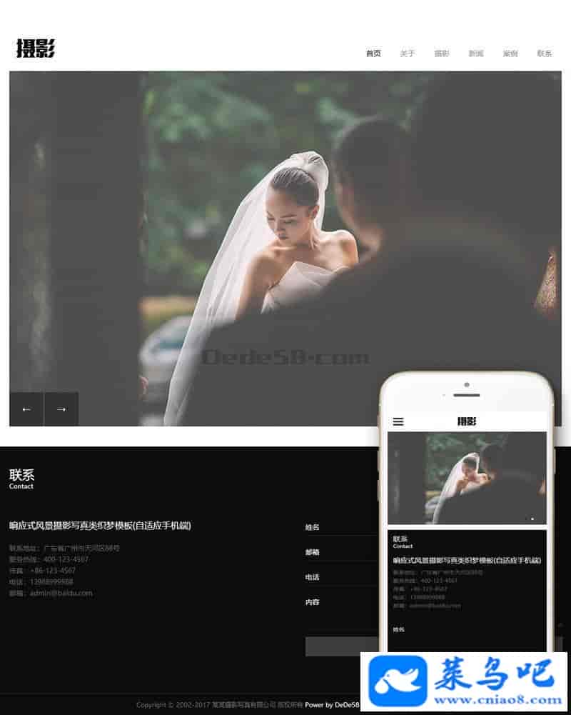 响应式风景摄影写真类织梦模板(自适应手机端)+PC+wap+利于SEO优化