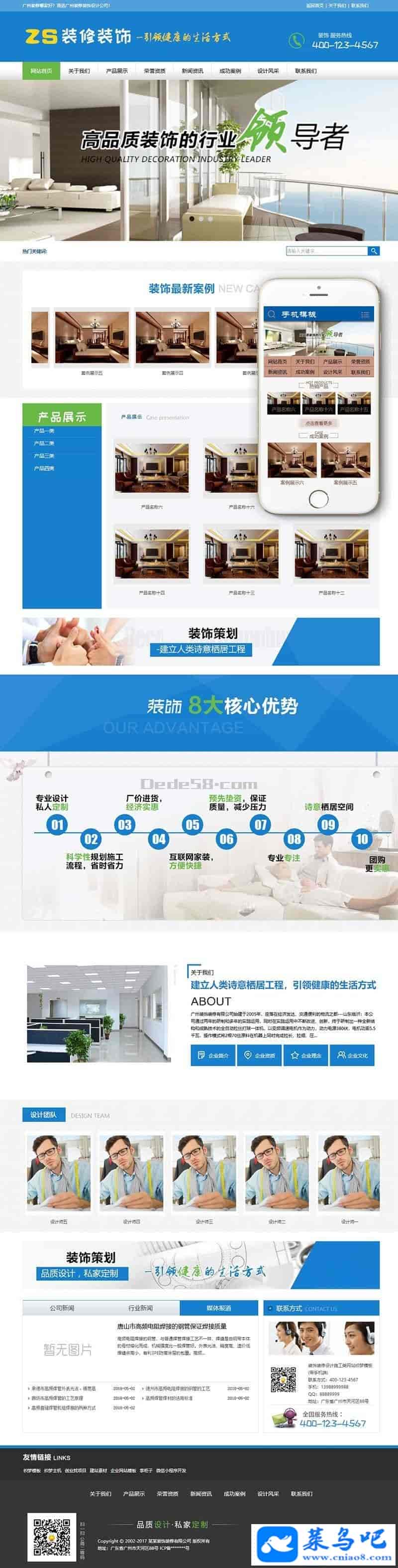织梦最新内核开发的模板,该模板属于企业通用类、装修、装饰、设计、施工类企业都可使用,