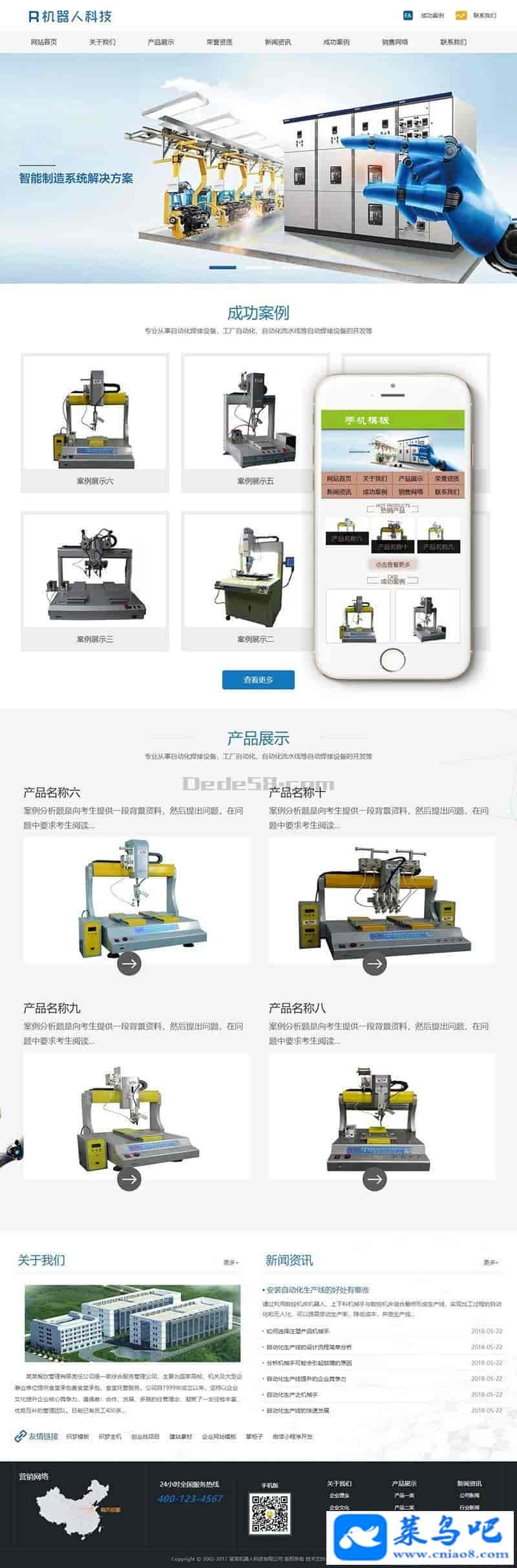 织梦最新内核开发的模板,该模板属于企业通用类、自动化焊接设备、工厂自动化、自动化各类机器人类企业都可使用,