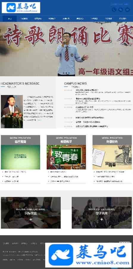 织梦最新内核开发的模板,该模板属于企业通用、HTML5响应式、实验外语学校、理工文史学院、职业学院类企业使用,一款适用性很强的模板,基本可以适合各行业的企业网站!