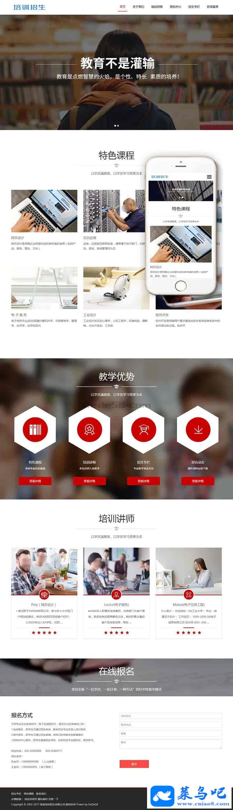 织梦最新内核开发的模板,该模板属于企业通用、HTML5响应式、招生、培训、教育类企业使用,一款适用性很强的模板,基本可以适合各行业的企业网站!