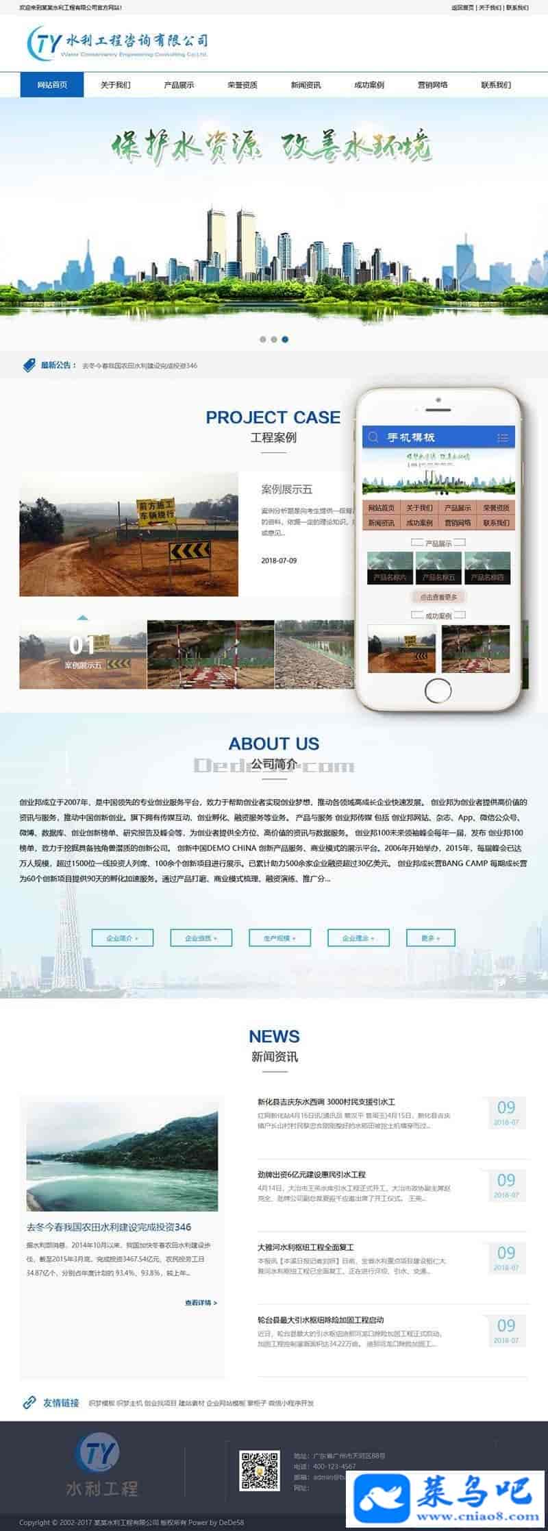 织梦最新内核开发的模板,该模板属于企业通用类、水利工程、水利施工、水利设计类企业都可使用,
