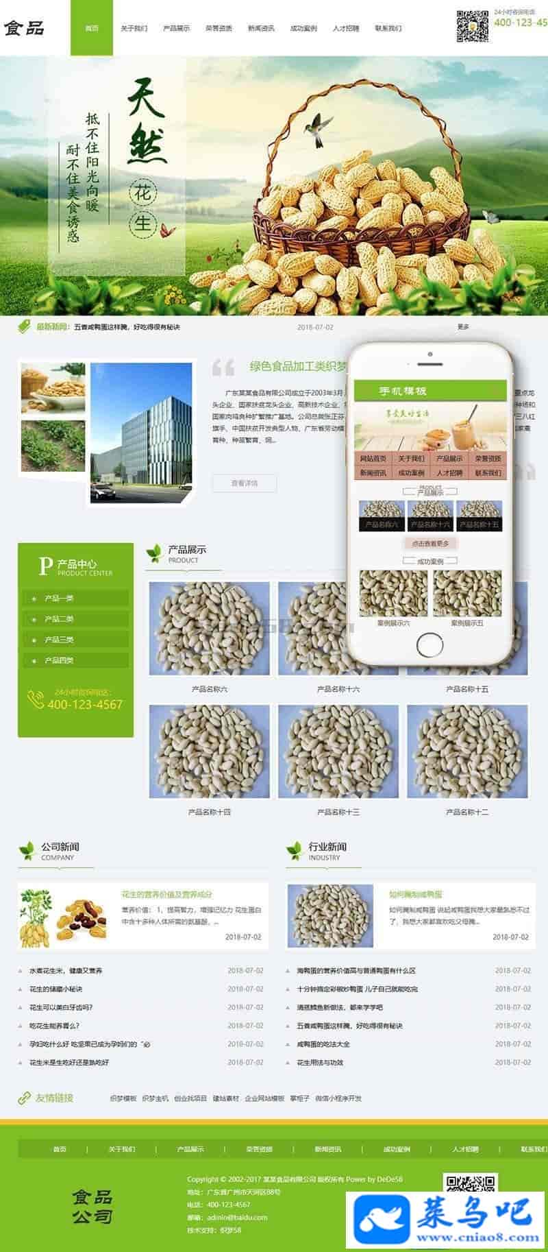 织梦最新内核开发的模板,该模板属于企业通用类、食品加工类企业都可使用,