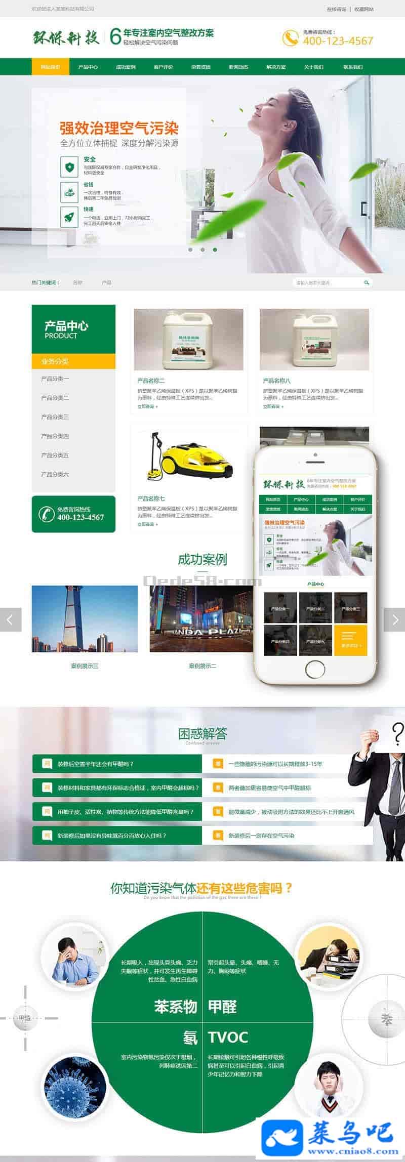 织梦最新内核开发的模板,该模板属于营销型企业通用类、甲醛检测、工程空气验收、装修甲醛治理、车内污染治理、装修材料检测类企业都可使用,
