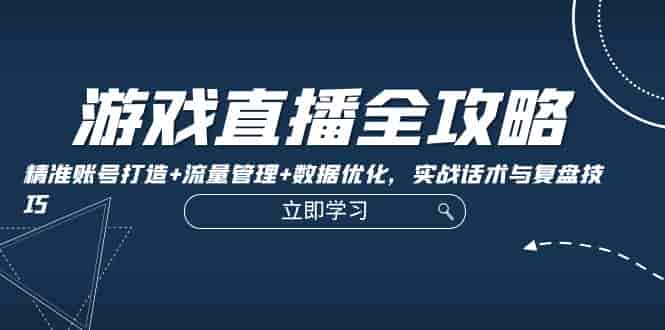 游戏直播全攻略:精准账号打造+流量管理+数据优化,实战话术与复盘技巧
