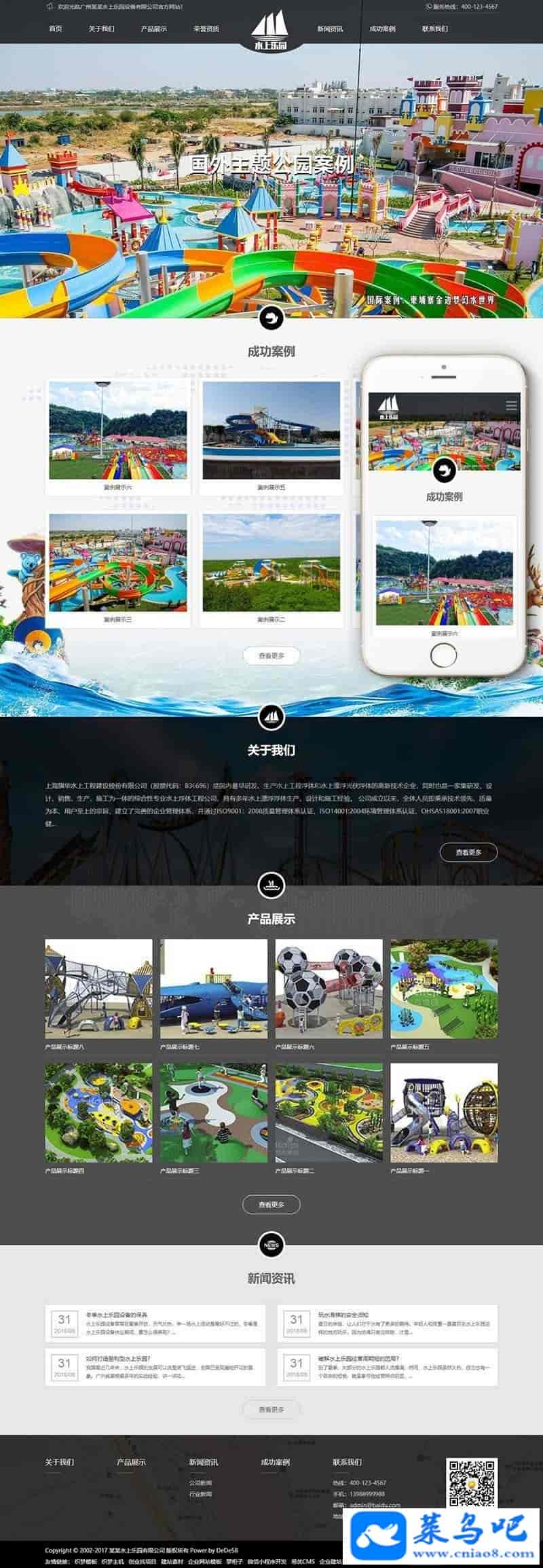 织梦最新内核开发的模板,该模板属于企业通用类、水上乐园设备、儿童滑梯类企业都可使用,