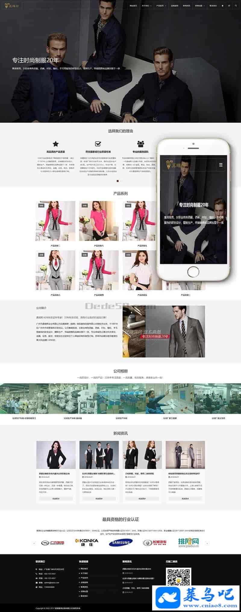 织梦最新内核开发的模板,该模板属于企业通用类、西装定制、衬衣定制、服装饰品类企业都可使用,