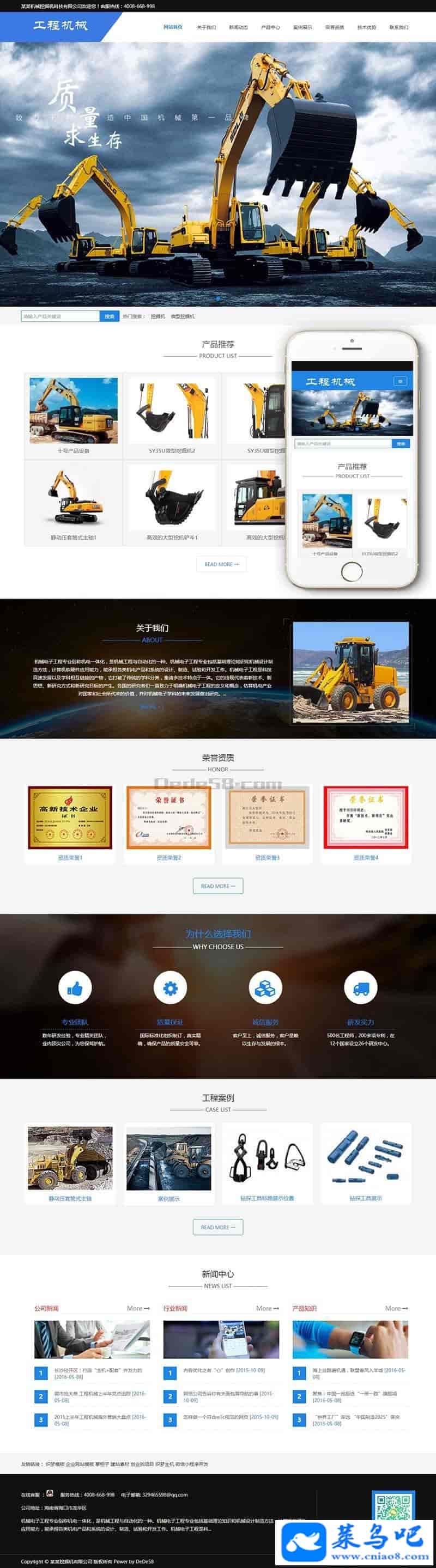 织梦最新内核开发的模板,该模板属于企业通用、HTML5响应式、工程机械、挖掘机、推土机类企业使用,一款适用性很强的模板,基本可以适合各行业的企业网站!