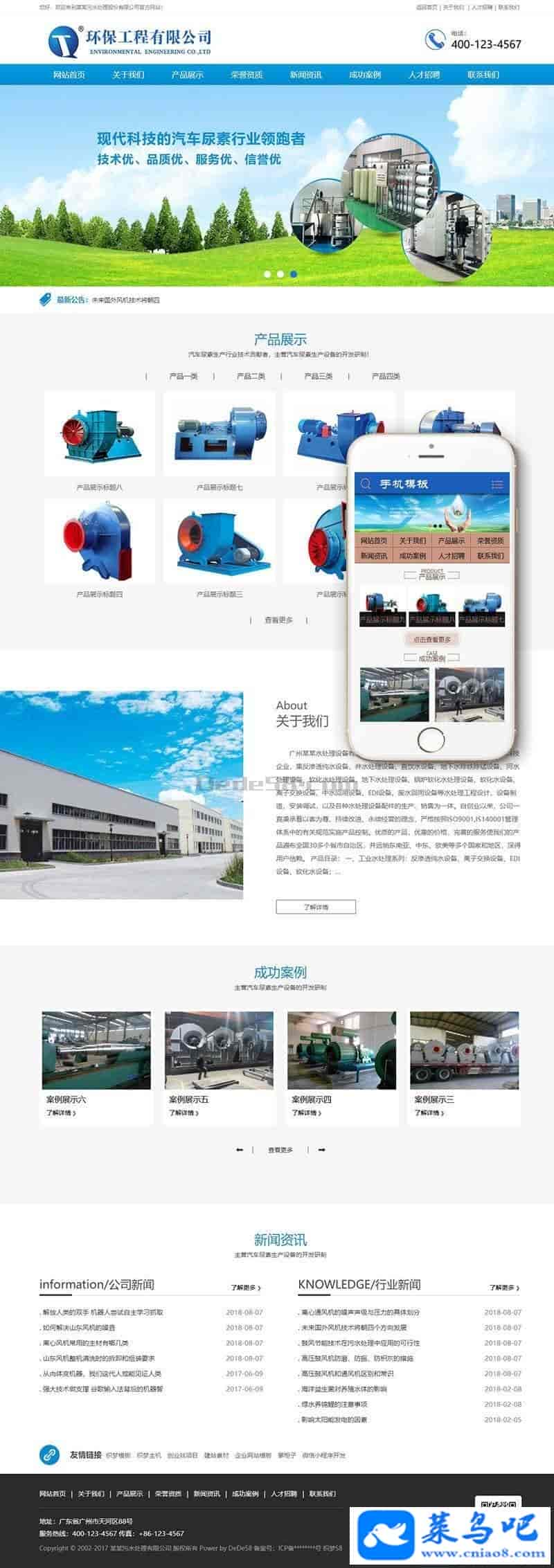 织梦最新内核开发的模板,该模板属于企业通用类、污水处理设备、尿素生产设备类企业都可使用,