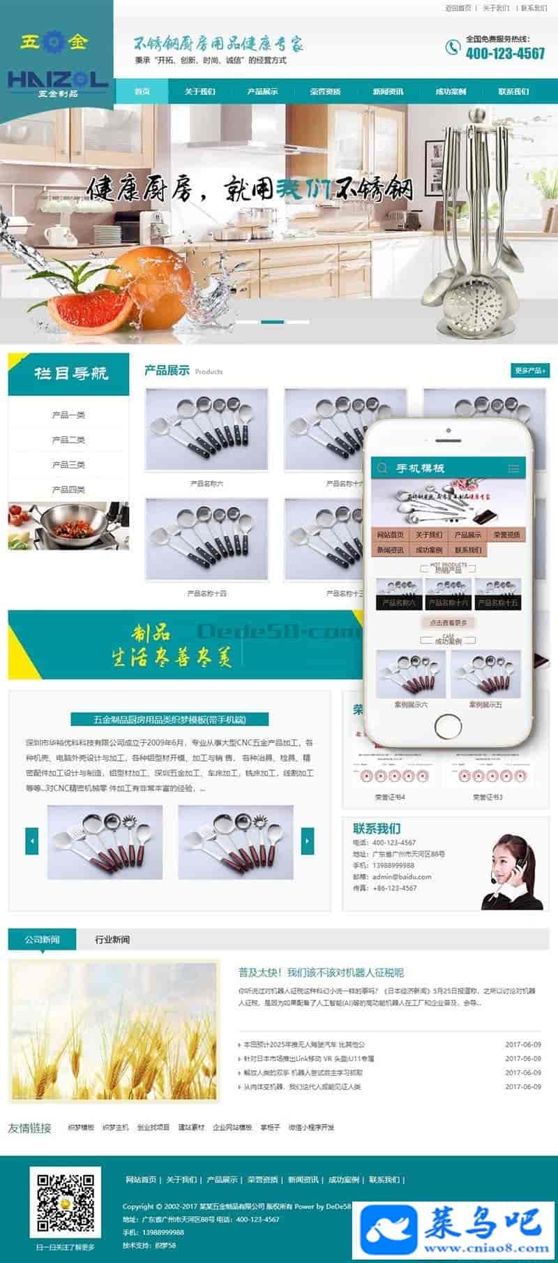 织梦最新内核开发的模板,该模板属于企业通用类、厨房用品、五金制品类企业都可使用,