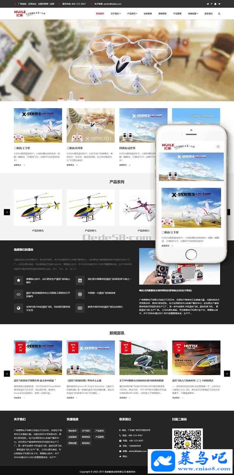 织梦最新内核开发的模板,该模板属于企业通用类、无人机、智能电子玩具、遥控功能车、手机遥控飞机、遥控玩具飞机类企业都可使用,