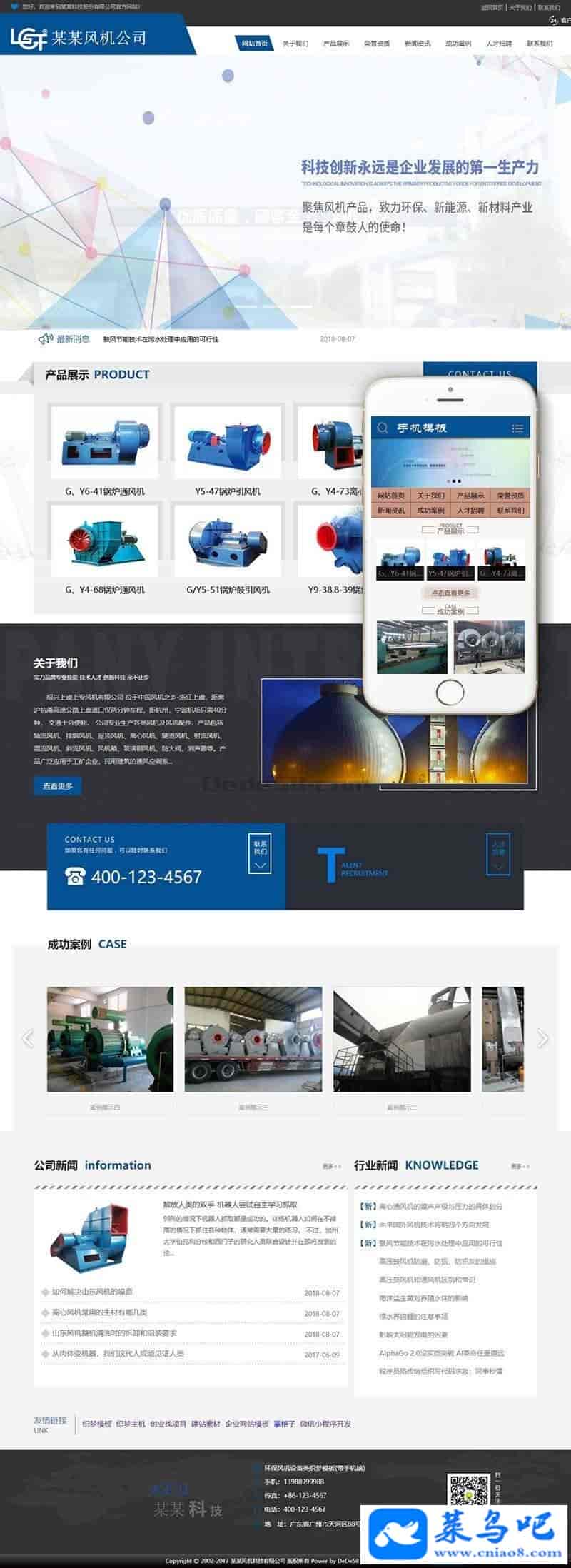 织梦最新内核开发的模板,该模板属于企业通用类、风机设备类企业都可使用,