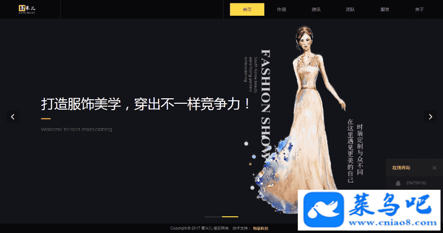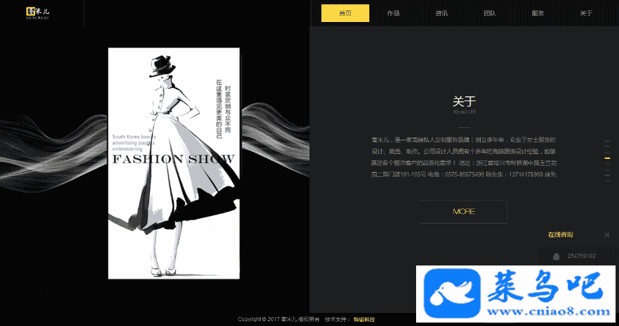 2、效果相当的炫酷,相当简洁大气高端,模板简单,全部已数据调用,只需后台修改栏目名称即可