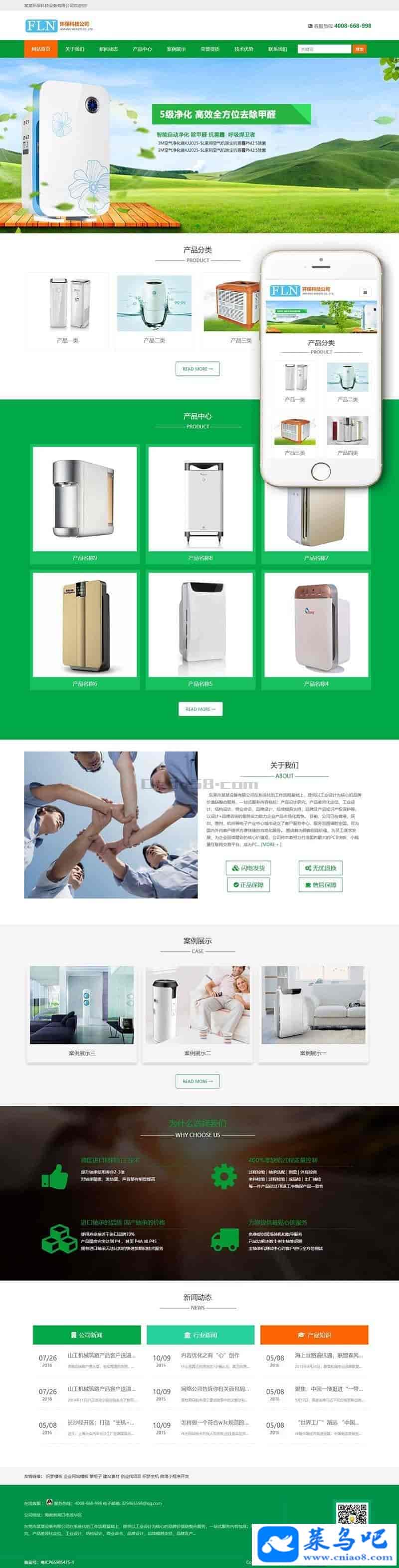 织梦最新内核开发的模板,该模板属于企业通用类、空气净化器、净水设备、环保空调类企业都可使用,