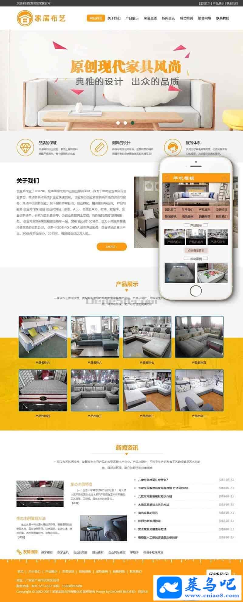 织梦最新内核开发的模板,该模板属于企业通用类、家居布艺、休闲沙发类企业都可使用,
