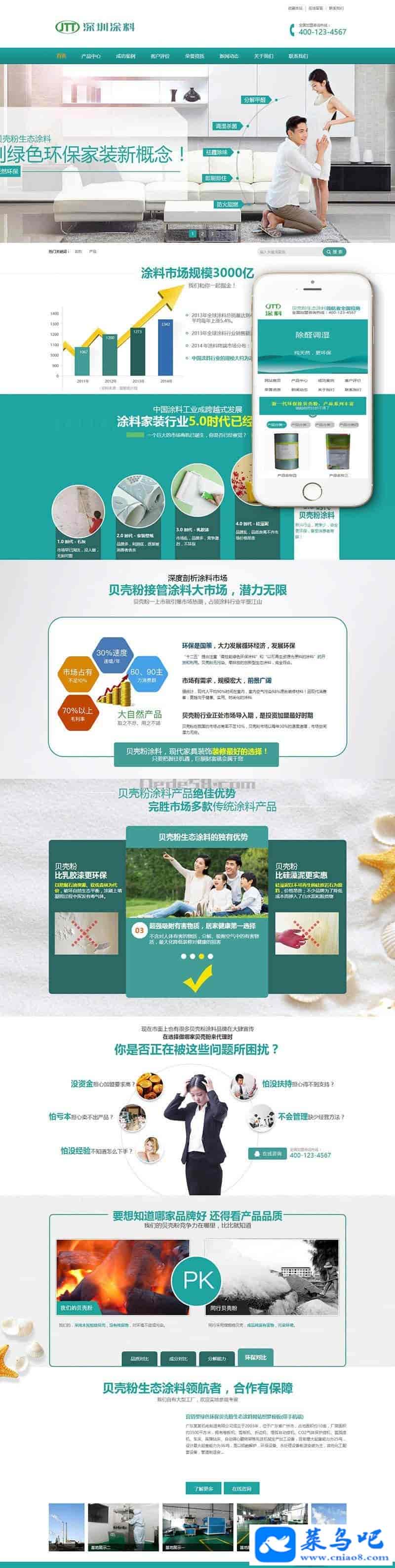 模板介绍:织梦最新内核开发的模板,该模板属于营销型企业通用类、环保材料、贝壳粉、生态涂料类企业都可使用,