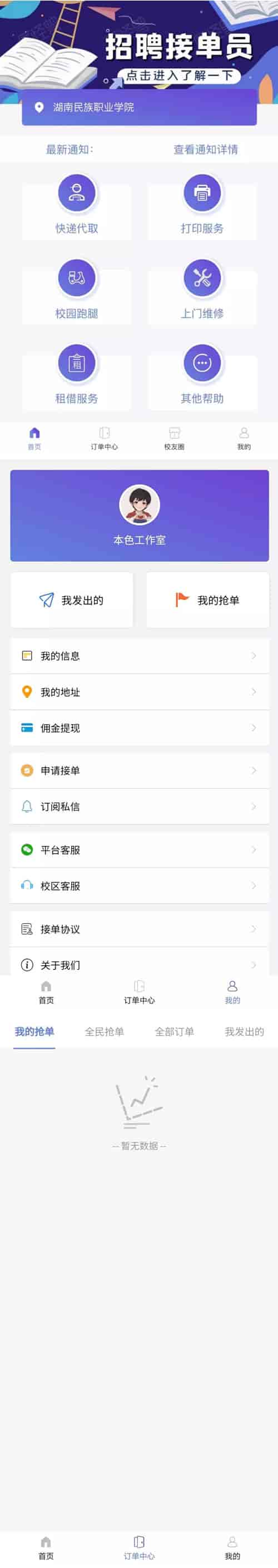 【亲测可运营】12月最新在互站买的H5校园跑腿源码/校园任务平台互站买的版本,东西还是很漂亮的,主要是没流通过。