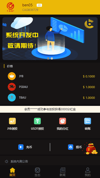 [PHP源码] 修复版区块链源码_CAGI虚拟资产币投资分红理财创投源码+杠杆转账源码