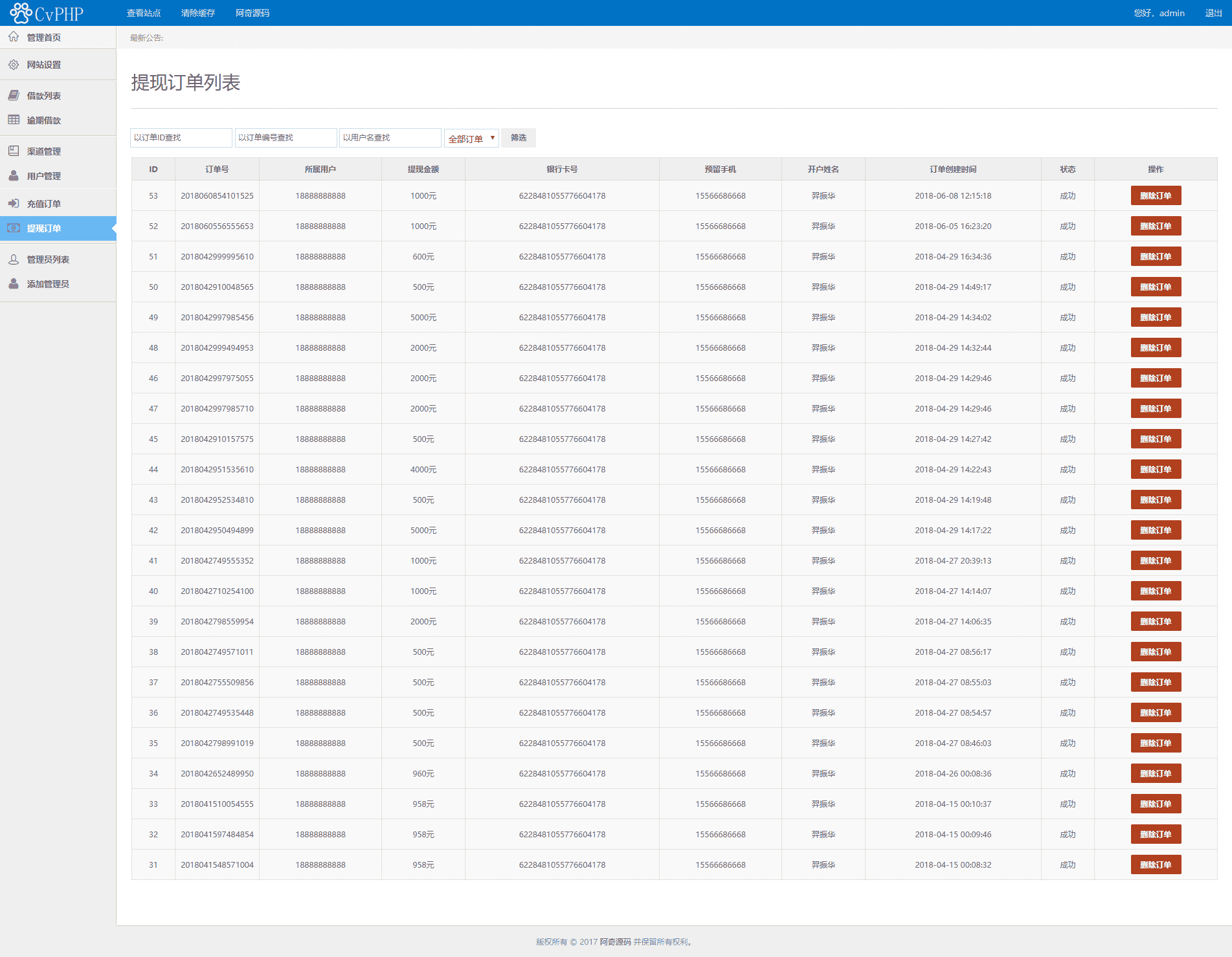 后台用户:admin