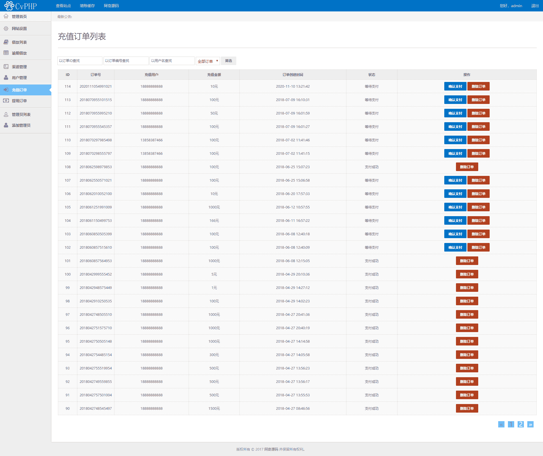 前台账号:18888888888