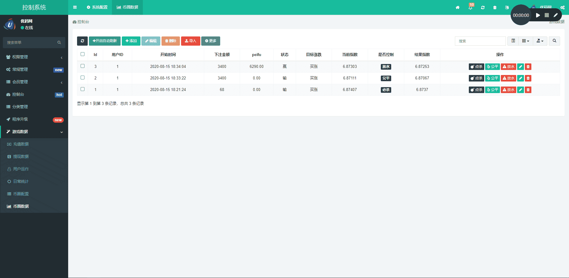 服务器系统:Linux + Centos7.x + 宝塔亲测环境:Nginx 1.18.0 + PHP7.0 + Mysql5.6运行目录:/publicPHP需要安装 redis 扩展 redis密码设置为 gznet100 删除所有禁用函数 开启1:65000端口数据库配置文件:/application/database.php后台地址:/admin.php后台用户:admin后台密码:123456执行命令:cd /www/wwwroot/www.cniao8.com/socket(特别说明:www.cniao8.com 更换 您自己网站对应目录)php yin.php start -d