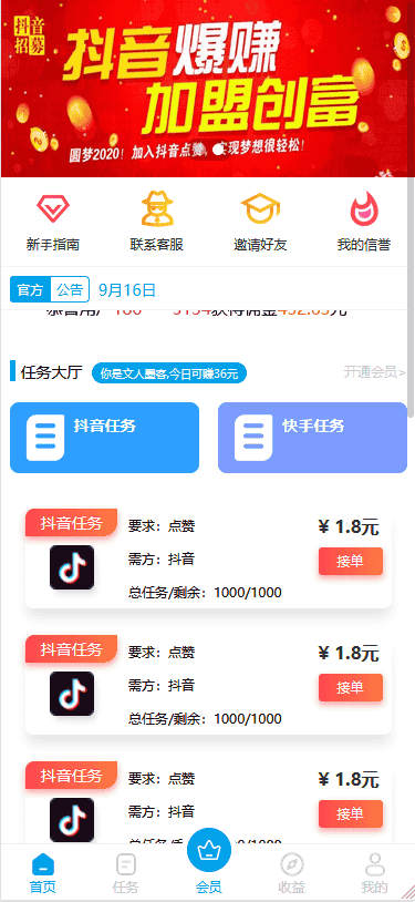 【已测】最新抖音快手点赞二开众人帮任务平台网站源码可绑定媒体账户对接免签支付