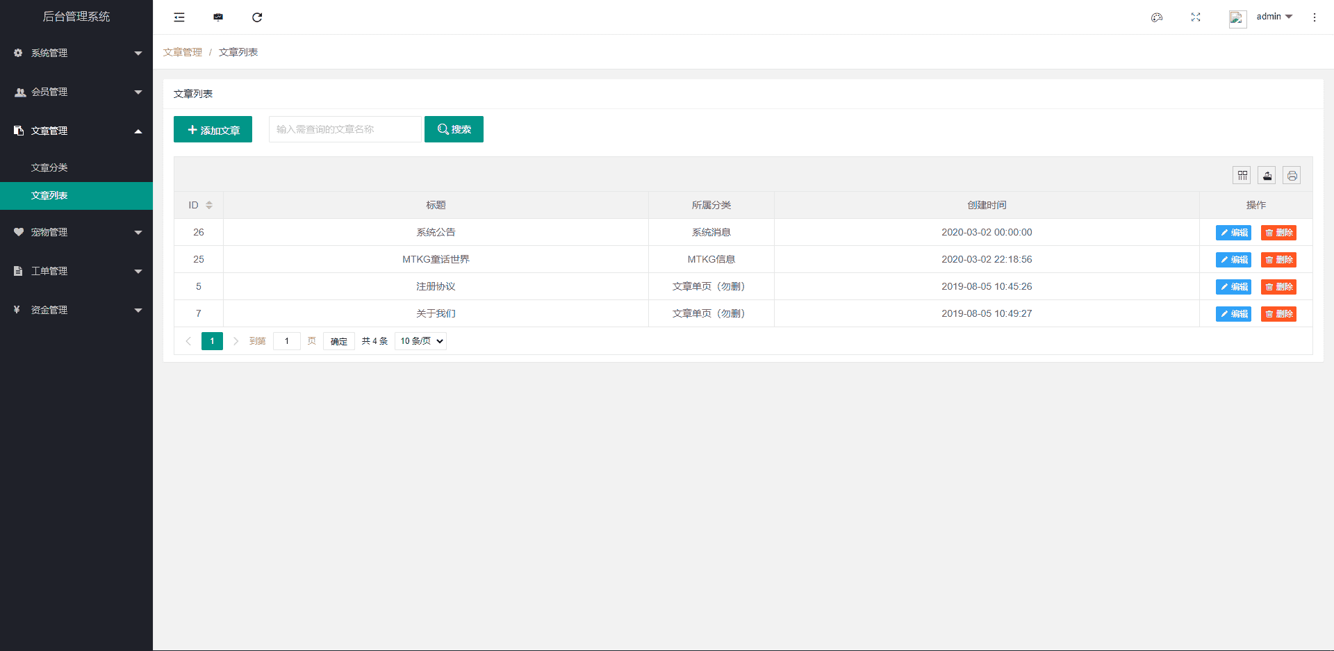 后台/admin 用户:admin 密码:123456